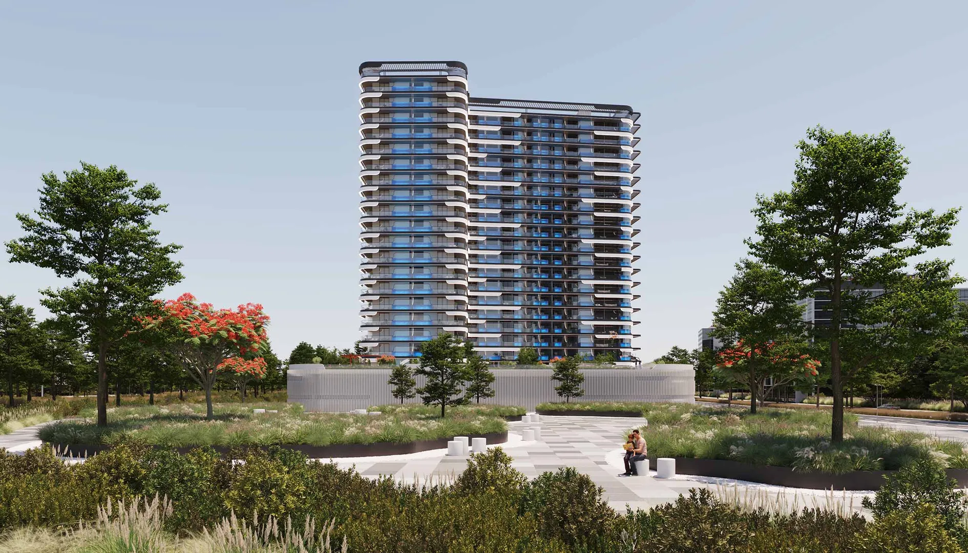 The development is complemented by a wide selection of resort style amenities, including swimming pools, fitness facilities, wellness areas, and landscaped open spaces that enhance everyday living. Retail outlets within the building provide added convenience, creating a self contained lifestyle experience.