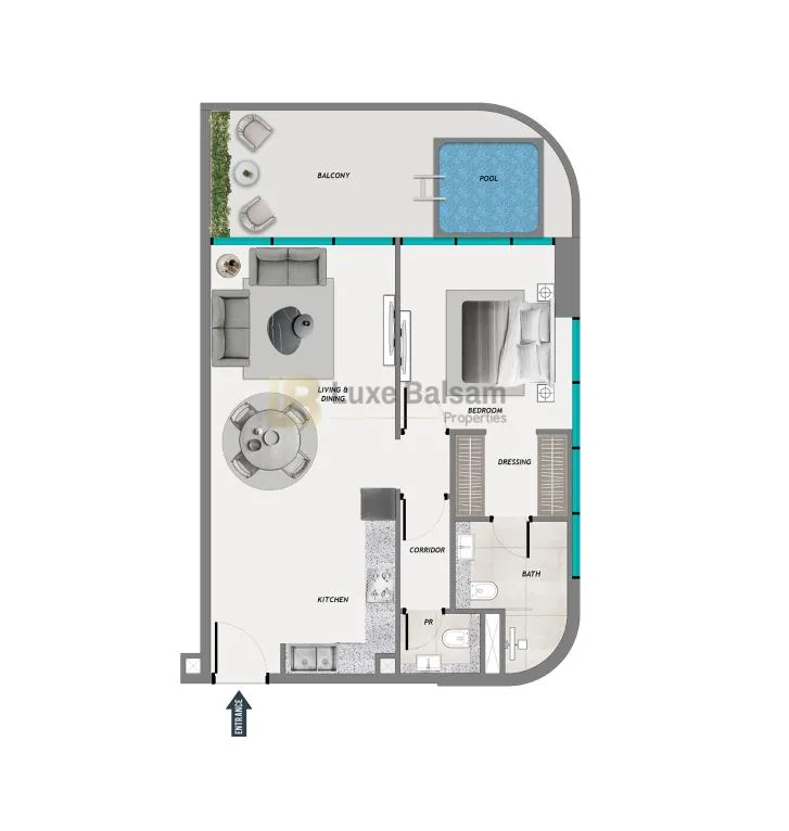 Studio, 1 & 2 Bedroom Apartments, Private pools integrated into every apartment unit, Resort‑style amenities including pools and courts
